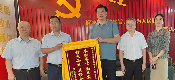 8月31日上午,株洲稷維環(huán)境科技有限公司總經理崔磊、副總經理鄧立峰一行前往株洲市自然資源和規(guī)劃局,贈送一面“盡職盡責,勤政高效,情系企業(yè),關懷備至”的錦旗,感謝株洲市自然資源和規(guī)劃局行政審批團隊在公司項目建設過程中的大力幫助與支持,株洲市自然資源和規(guī)劃局二級調研員、副局長曹陽接旗,行政審批團隊團長譚玉明、行政審批科副科長袁進進參加儀式。